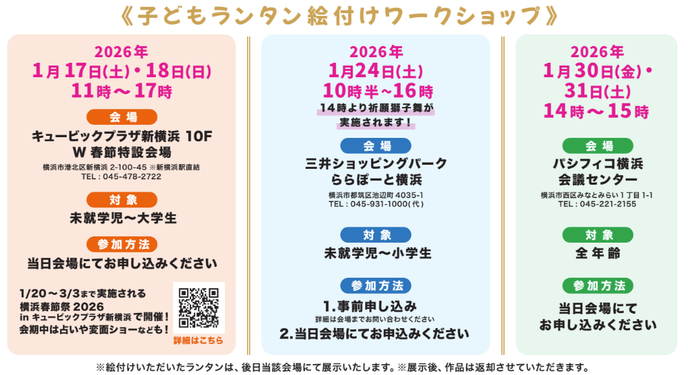 そして、「絵付け」したランタンを、横浜春節祭2026の会場に飾って皆さんに見ていただく「展覧会」です。